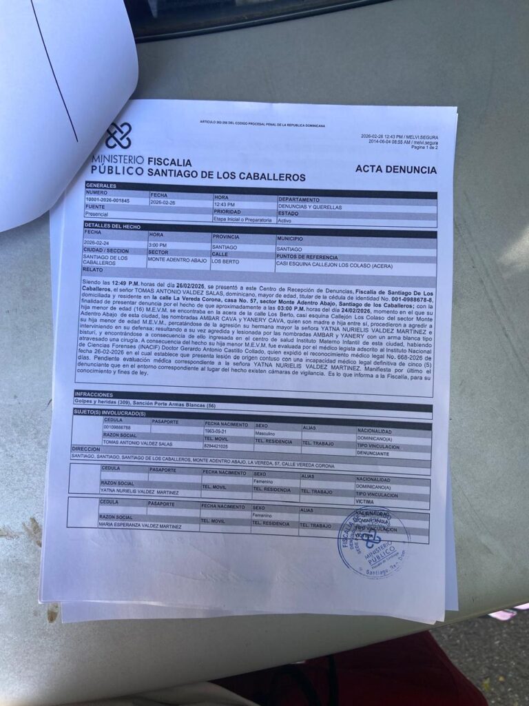 Santiago.– Un hecho ocurrido recientemente en el sector Monte Adentro Abajo, en el municipio de Licey Al Medio, ha generado profunda preocupación entre residentes y familiares de una joven de 20 años que resultó con heridas de consideración tras un altercado que, según versiones ofrecidas por su padre, se habría originado por una discusión entre menores de edad.