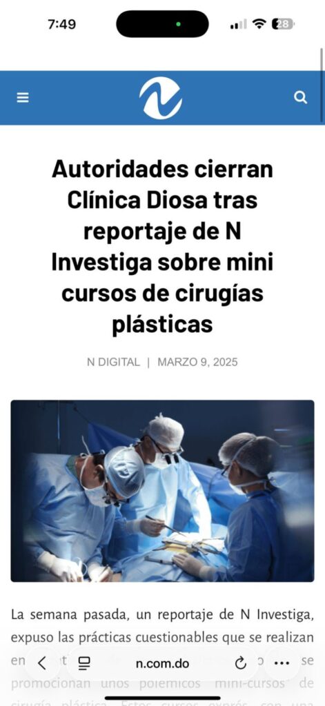 Un medio local difundió reportes según los cuales el centro médico había sido mencionado anteriormente en denuncias públicas, entre ellas algunas presentadas en reportajes de investigación periodística. En esos trabajos se hacía referencia a supuestas irregularidades vinculadas a la promoción de “mini-cursos” privados de cirugía plástica en Santiago de los Caballeros, una situación que en su momento provocó preocupación entre pacientes y sectores del área de la salud.